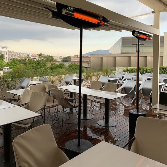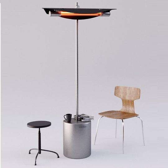 Дизайнерская модель уличного карбонового обогревателя. Veito Manta с карбоновой нитью производит тепло на средних волнах инфракрасного диапазона и обладает высокой влагостойкостью (IP55), что позволяет ее использовать не только в помещениях, но и на улице.