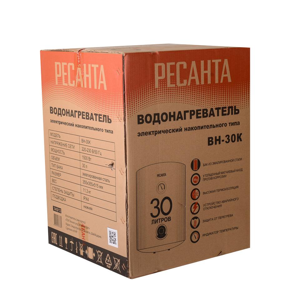 Накопительный водонагреватель Ресанта ВН-30К используют для подогрева холодной воды, поступающей из водопровода. Он может использоваться как в период профилактических отключений, так и в домах с постоянно отсутствующим ГВС.